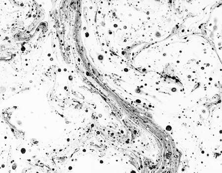 Marbled black ink patterns create a striking effect against a white background