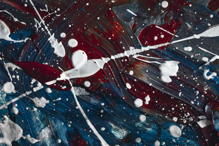 Denim blue, red and white Thick paint texture. Oil and acrylic painting. Brushstrokes of paint. Modern art. Contemporary art.
