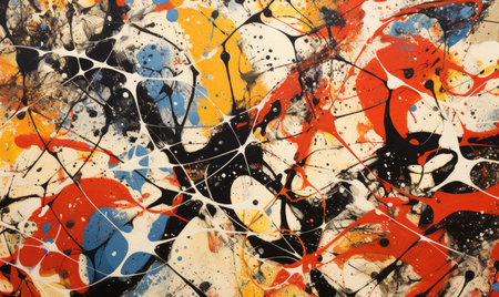 A colorful abstract painting with dynamic paint splatters. Generative AI