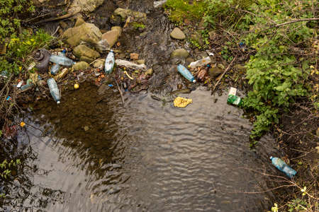 Water pollution. Ecological problem. Environmental pollution waste.