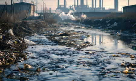 Polluted river flowing through an industrialized area