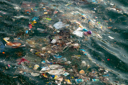 Concept environmental pollution ocean and water with garbage plastic and human waste. Aerial top view