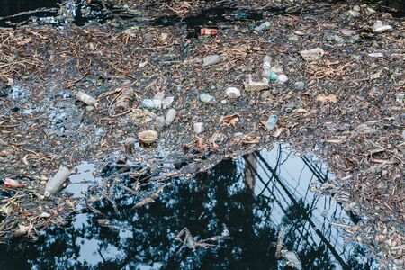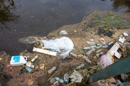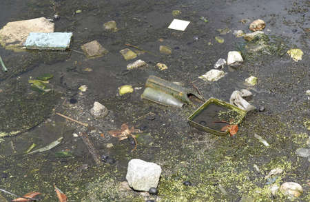 River that is polluted with various garbage and trash, Polluted rivers, photography