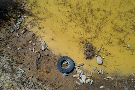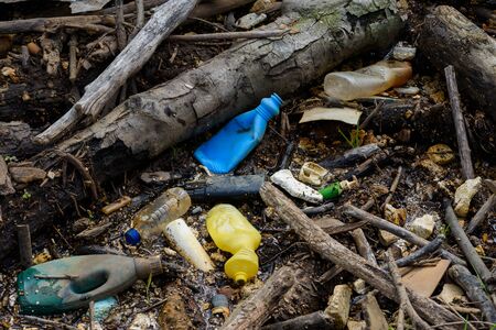 Plastic pollution in nature. Ecology contamination.