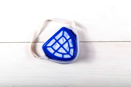 Protection respirator half mask for toxic gas.The man prepare to wear protection air pollution in the chemical industry