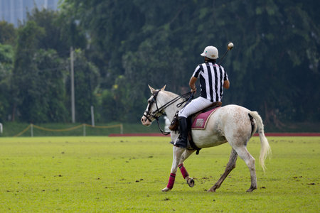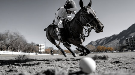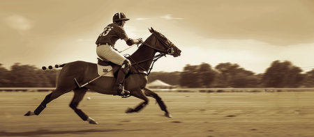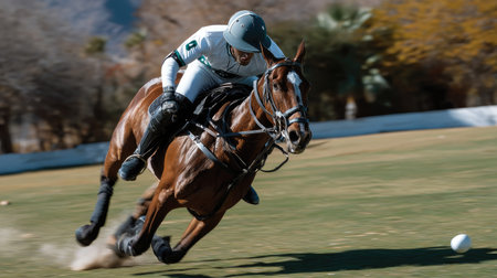 A thrilling moment captured of a polo player harnessing speed and agility as they maneuver on horseback during an exciting game, showcasing athletic prowess.