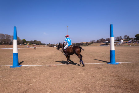 South-Africa v Zambia Player riders action play at world cup polo-cross championship games at Shongweni equestrain fields outside Durban.