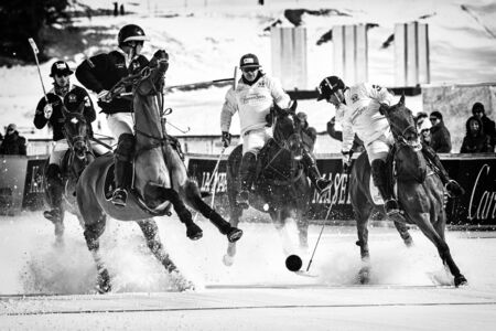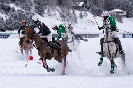 St. Moritz - January 27, 2018: Game actions at the Snow Polo World Cup St.Moritz 2018