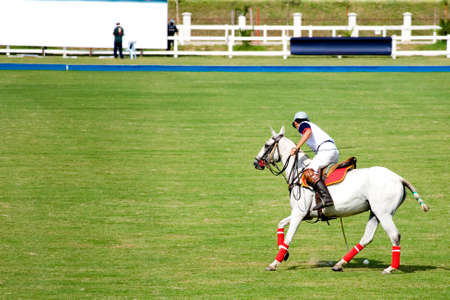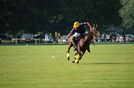 CIRENCESTER, UK – AUGUST 25: A polo player on a horse playing at the Cirencester Park Polo Club in Cirencester, UK on August 25, 2013.