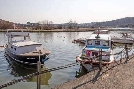 Boats parked in the Bosphorus in Istanbul on a sunny day. Turkey