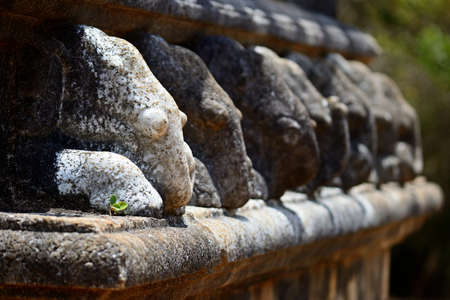 Detail selective focus of elephant shape carved stone at Kantaka Chetiya temple in Mihintale, Sri Lanka