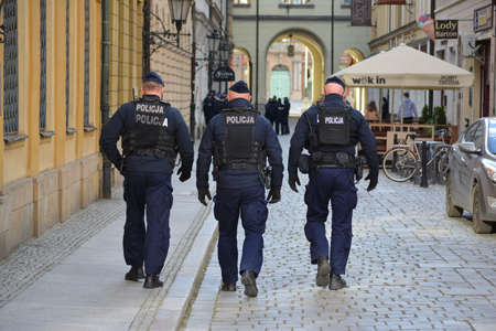 04.25.2021 r, wroclaw, poland, A group of policemen on patrol in the city.