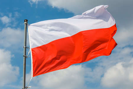 Flag of Poland on blue sky ship outdoor