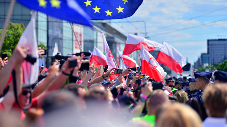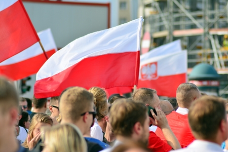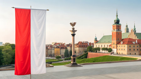 Polish national flag in Warsaw – patriotism and street scenes