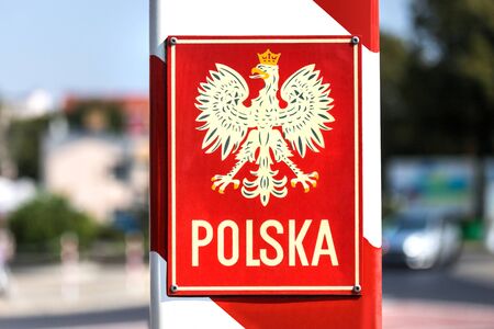 Warsaw, Poland. 27 April 2020. Sign Polish Post. Company signboard Poczta Polska