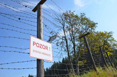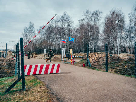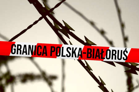 Polish Border Post. Concept. Border post closed behind a fence, Border of the Polish state, close up