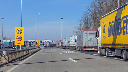 February 25, 2022 Ocnita Moldova. State border with Ukraine and customs checkpoint. For illustrative editorial use