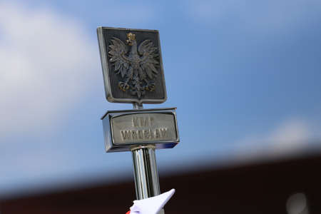 SWINOUJSCIE - POLAND - 2021: Polish border post with the national emblem