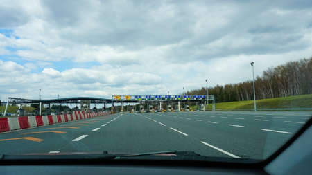 Russia Moscow 12.08.2019 M4 highway checkpoint. Barrier planta road