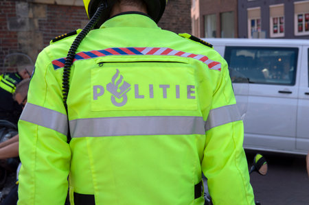 Backside Of A Police Motor Officer At Amsterdam The Netherlands 2019