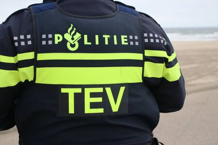 Explosive specialist of the Police (TEV) and the army (EOD) bringing criminal explosives to an explosion on the beach of scheveningen close to The Hague,the Netherlands