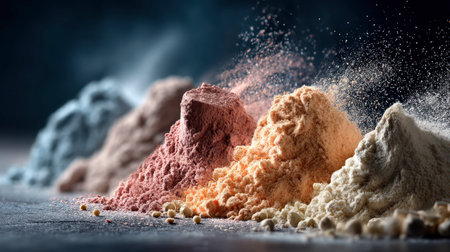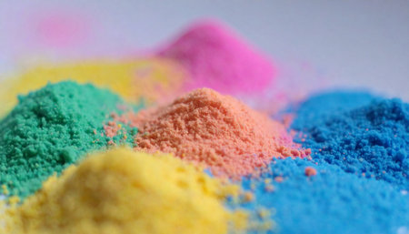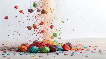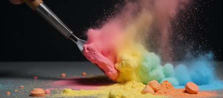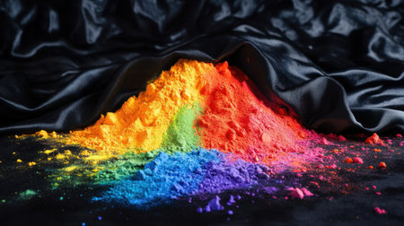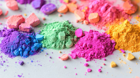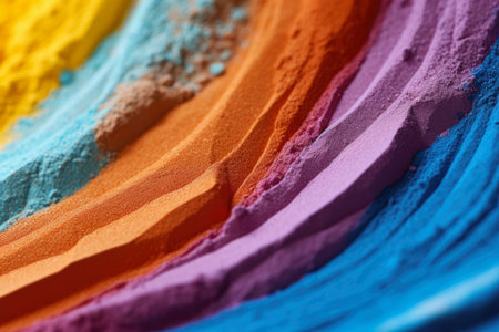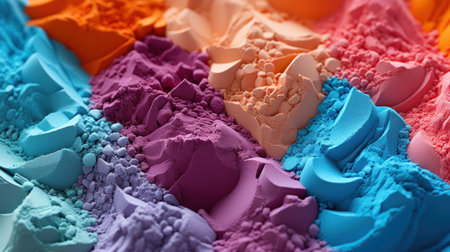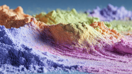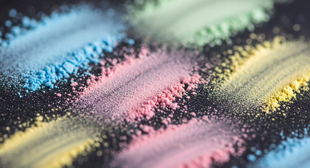 Beautiful blend of colorful powder particles scattered on a surface, creating a vibrant abstract art background, perfect for artistic or creative projects.