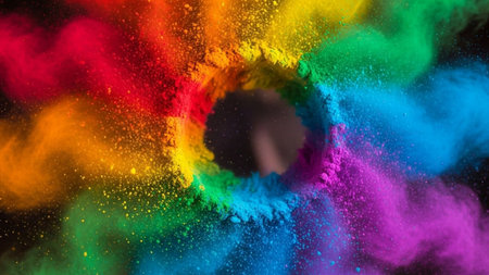 This stunning image captures the vibrant explosion of colorful powders, creating dynamic abstract patterns that evoke creativity and artistic expression.