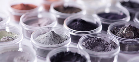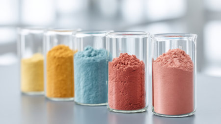 Rare Earth Mineral Powders in Transparent Containers on Clean White Background for Scientific Analysis