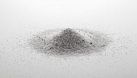 AI generated ,abstract dark debris and ash particles dispersing in a dynamic arc on clean white background conveying energy motion destruction and transformation with ample copy space