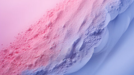A stunning display of vibrant colored powders creates a playful explosion of pink, blue, and orange hues, ideal for artistic and creative projects.