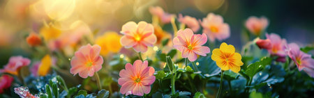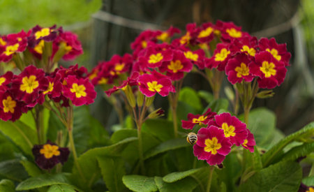 primula very nice colorful primrose close up in the sunshine garden