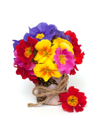 bouquet of primula flowers isolated on white background