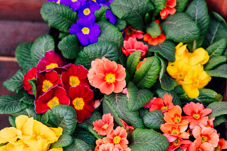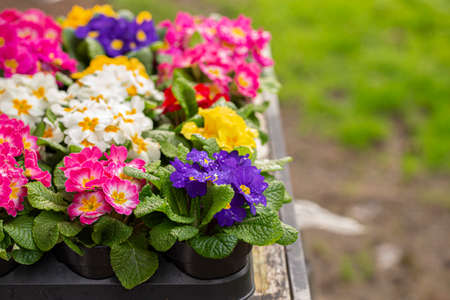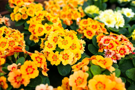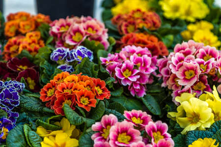 Flowering colorful Primrose outdoors