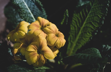 details of primroses plants in indoor, ambient light