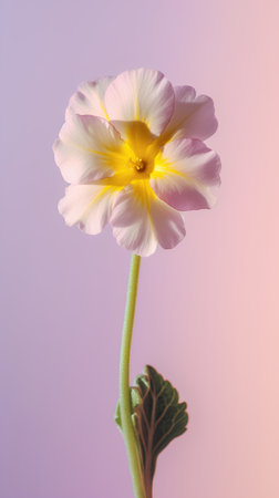 Primrose flower on a pink background. Flat lay, top view.