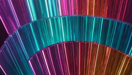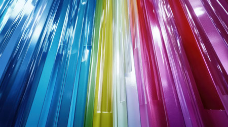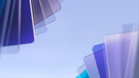 Stacked translucent glass rectangles in soft pastel colors with subtle lighting. Clear details and vibrant col...