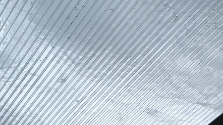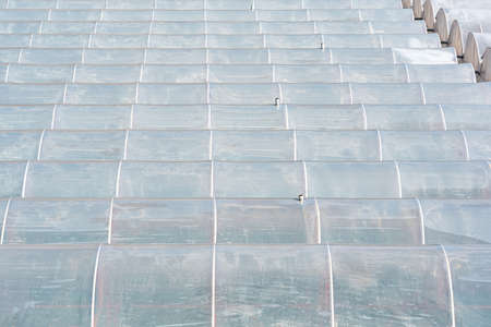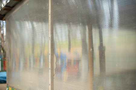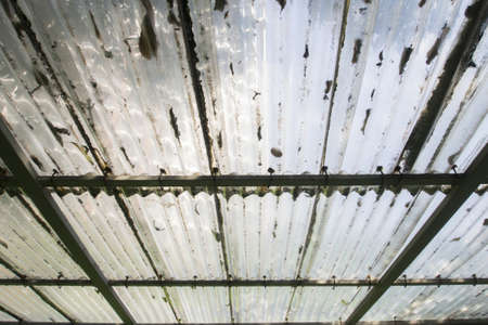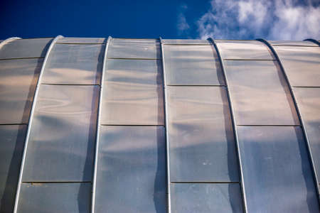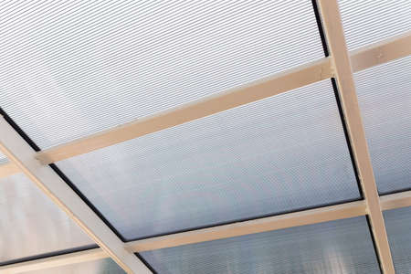 Polycarbonate stripped sheet on a metallic frame outdoor – Polymer based material for thermal protection - Modern transparent acrylic equipment used in construction