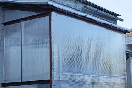plastic wall. transparent plastic. Details of structure of veranda. wall surface.