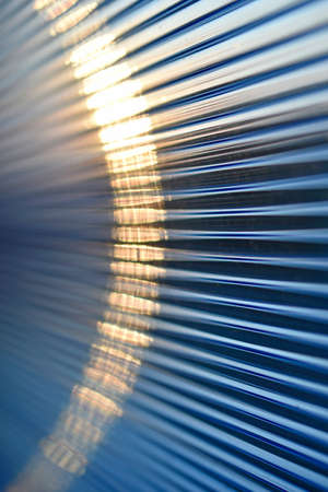 Striped blue polycarbonate in the rays of the evening sun
