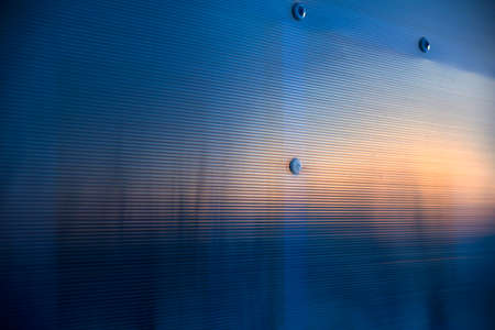 Sunset behind the corrugated iron sheet. Abstract background.