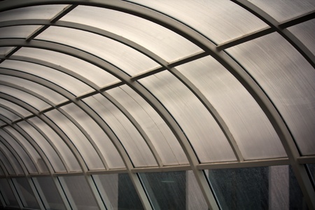 blue glass corridor in office centre
