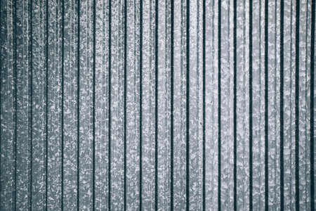 Silver tin iron wall with vertical and diagonal stripes from a metal profile of a metal sheet. Texture, background.