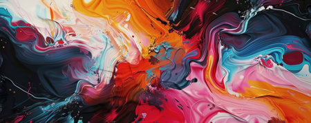 Colorful flow: Bold modern abstract art using a liquid swirl technique, with vibrant colors creating a dynamic and engaging composition