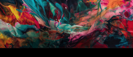 Vibrant Abstract Art with Dynamic Swirls of Colorful Paints in Fluid Motion and Depth.