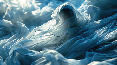 Translucent thin fabric fluttering in the wind. Abstract wavy background. AI generated.