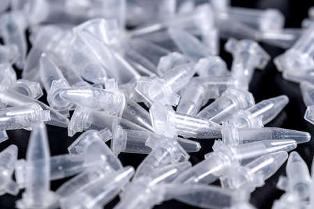 Close-up of a row of glass vials with samples for scientific experiments. The concept of scientific research and development.