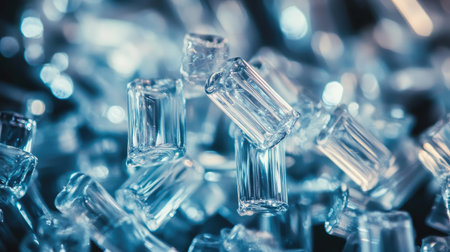 A close-up of transparent plastic pellets used in industrial production.