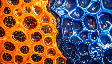 abstract background of orange glass mosaic with holes, close-up