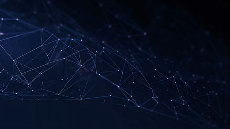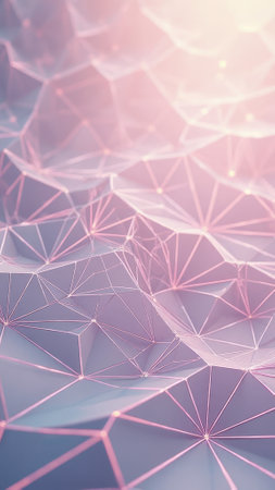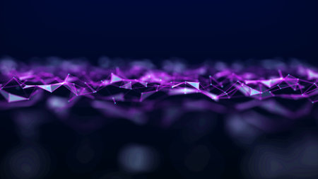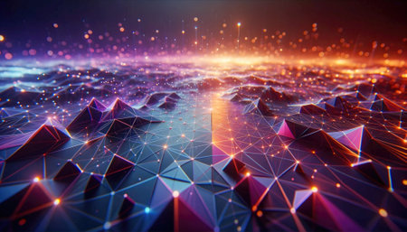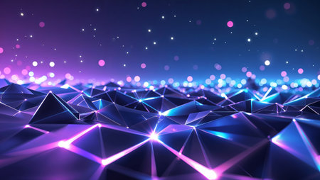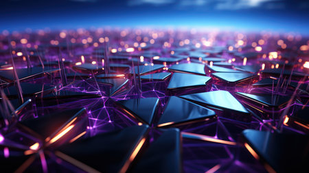 Luminous network background. Digital landscape with intricate network of interconnected polygons and gleaming lights
