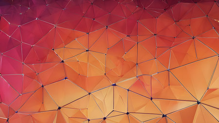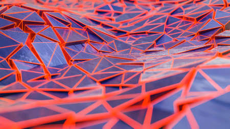 low poly background made of blue triangles with red glowing lines. 3d render illustration